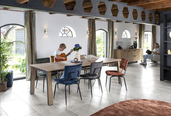 Manou, chaise de bar avec accoudoirs - off black - tissu Karese
