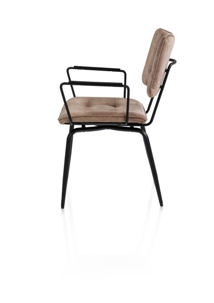 Manou, chaise de bar avec accoudoirs - off black - tissu Karese