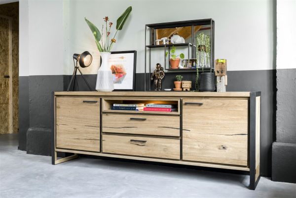 Metalo, buffet bas 210 cm - 2-portes + 1-tiroir + 1-niche (+ LED)