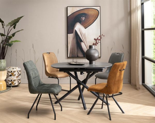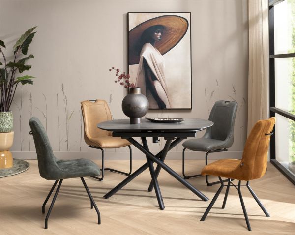 Mischa, chaise - 4-pieds avec liaison croissee + poignee - tissu karese