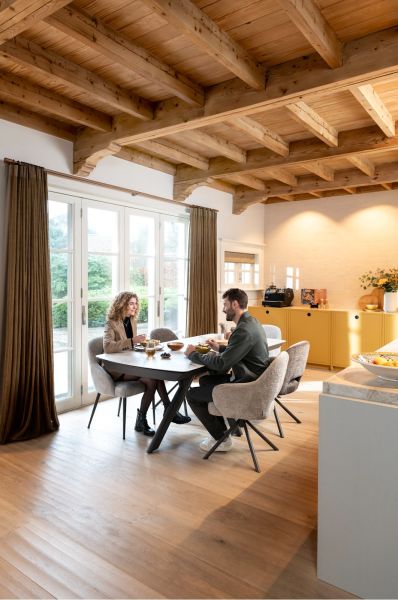 Nikolas, chaise à accoudoirs - pied central pivotante