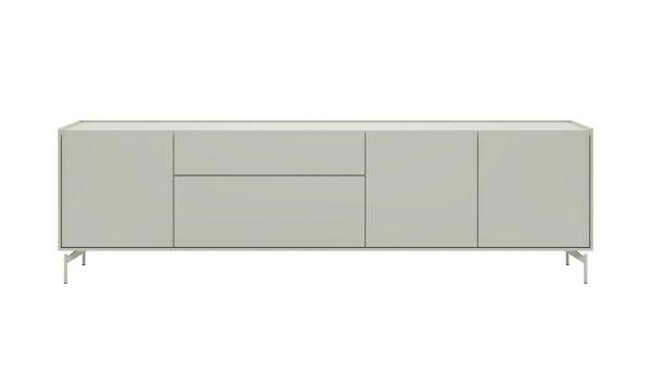 Noon, buffet bas 240 cm - 3-portes + 2-tiroirs - complet silk grey