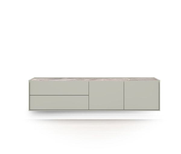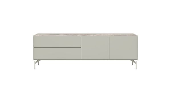 Noon, buffet bas 170 cm - 2-portes + 2-tiroirs - plateau en HPL light grey