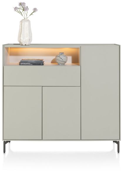 Noon, dressette 148 cm - 3-portes + 1-tiroir + 1-niche (+ LED) - complet silk grey