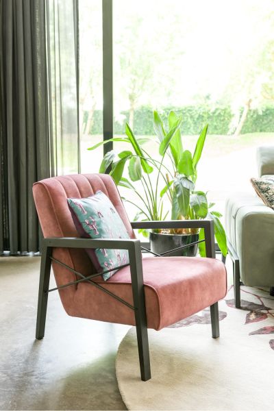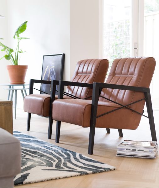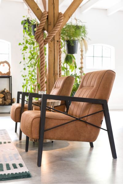 Northon, fauteuil avec accoudoir en bois vintage clay / white / black