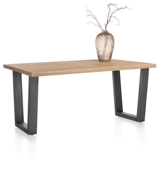 Nyborg, table 200 x 100 cm - plateau avec bords effet tronc d'abre - pied métal en V