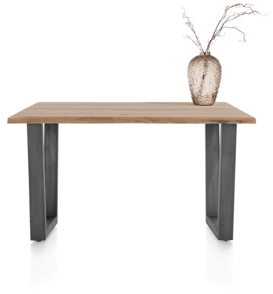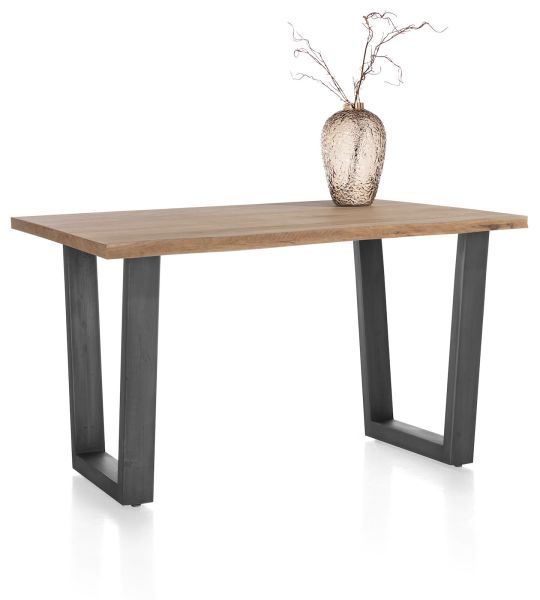 Nyborg, table 150 x 100 cm - plateau avec bords effet tronc d'abre - pied métal en V