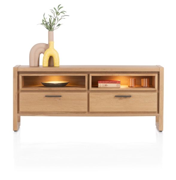 Nystead, buffet bas 140 cm. - 2-tiroirs + 2-niches (+ LED)
