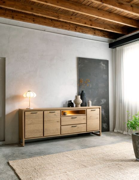 Nystead, buffet 210 cm. - 2-portes + 2-tiroirs + 1-niche (+ LED)
