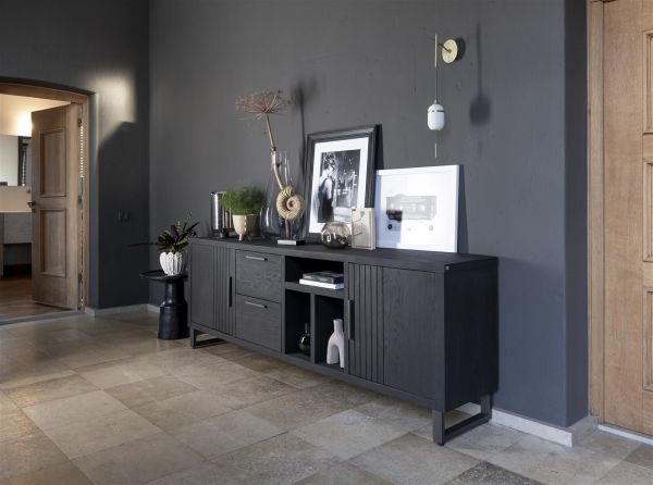 Pavie, buffet bas 200 cm - 3-portes + 2-niches (+ LED)
