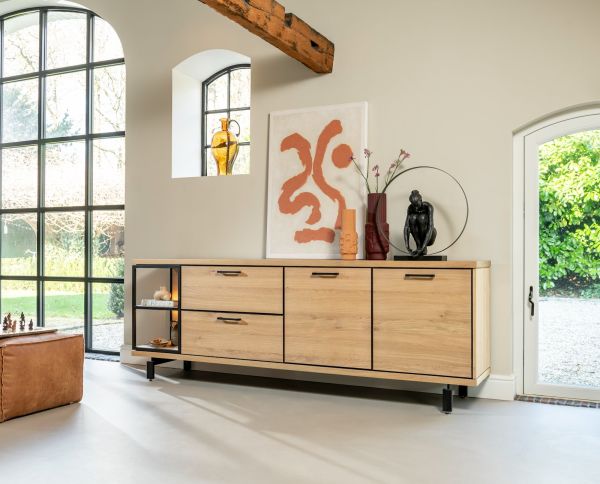 Ridgefield, buffet 230 cm - 2-portes + 2-tiroirs + 2-niches (+ LED)