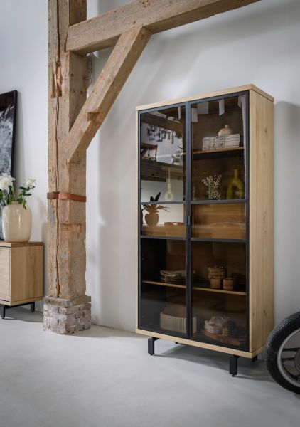 Ridgefield, vitrine 100 cm - 2-portes en verre + 2-tiroirs (+ LED)