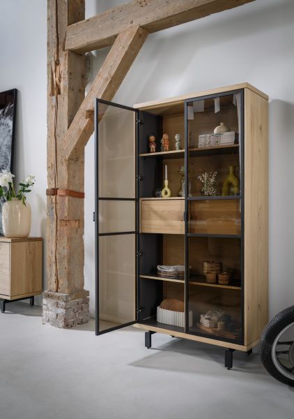 Ridgefield, vitrine 100 cm - 2-portes en verre + 2-tiroirs (+ LED)