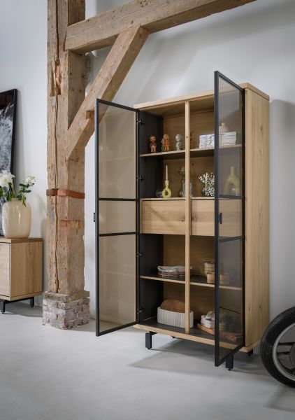 Ridgefield, vitrine 100 cm - 2-portes en verre + 2-tiroirs (+ LED)