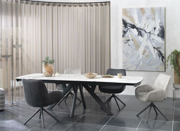 Riley, chaise à accoudoirs - piétement bois chêne naturel - pivotante -confort ressorts-tissu Cadiz