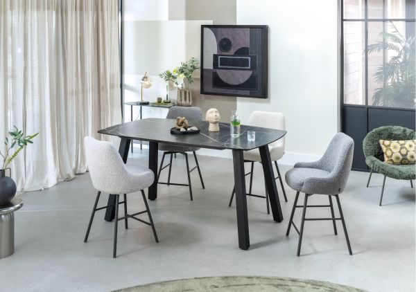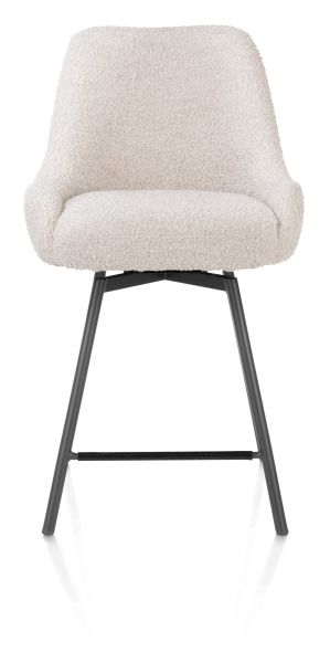 Ce tabouret de bar pivotant Rocco possède une assise large et confortable et repose sur 4 pieds en métal de couleur graphite. Le Rocco est revêtu du tissu tendance en bouclé Brioni, disponible en deux coloris. Préférez-vous la version crème ou taupe ?La fonction de retour automatique le rend particulièrement pratique. Le Rocco est également disponible en chaise et en fauteuil, avec un choix de piètement : cadre graphite ou cadre en chêne.