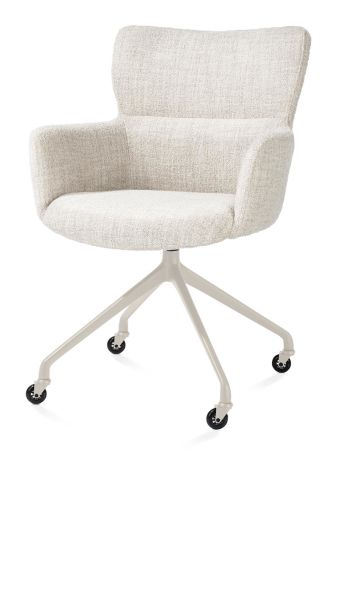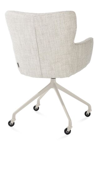 Sage, chaise à accoudoirs + roulettes - pietement aluminium creme - tissu Luton