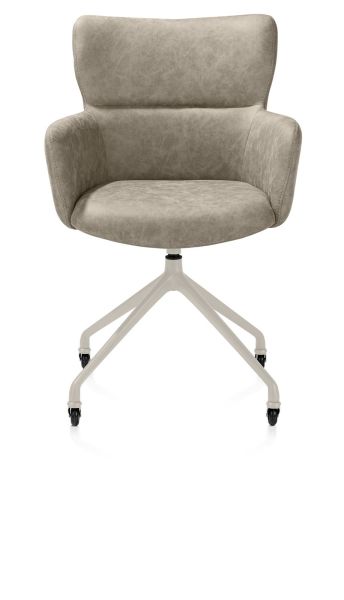 Sage, chaise à accoudoirs + roulettes - pietement aluminium creme - tissu Oregon