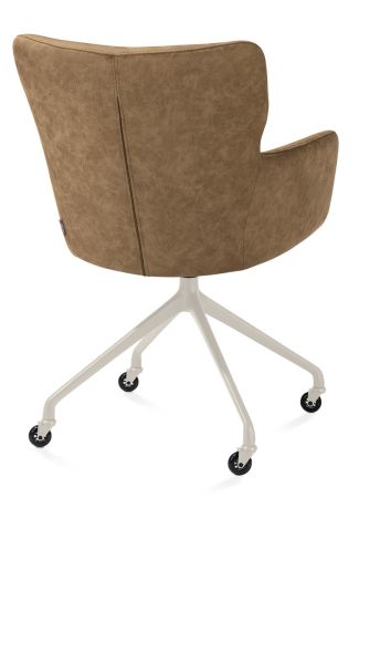 Sage, chaise à accoudoirs + roulettes - pietement aluminium creme - tissu Luton