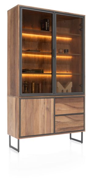 Trapani, vaisselier 120 cm - 2-portes verres + 1-porte + 2-tiroirs (+ LED)