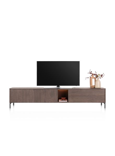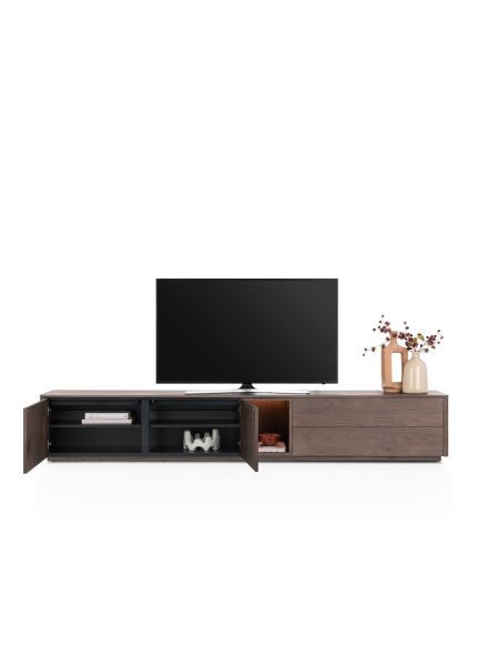 Trenton, Planche basse 270 cm. - 2 portes + 2 tiroirs + 1 niche