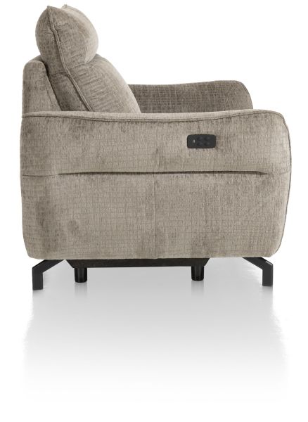 Ce loveseat de la collection Odessa est un chouette fauteuil qui, placé dans votre séjour, fera office d'accroche-regard luxueux. Question format, le loveseat se situe entre un fauteuil standard et un 2 places. En d'autres termes, c'est un 1,5 place. Ce Odessa mesure 122 cm de large. Cette collection se caractérise par ses larges accoudoirs obliques et par une belle surpiqûre sur le dossier et les accoudoirs. En outre, vous composez ce loveseat entièrement vous-même en choisissant le revêtement, le confort et d'autres options. Ce fauteuil se décline aussi bien en tissu qu'en cuir, et même dans une combinaison de deux revêtements différents. Pour le confort d'assise, 3 options s'offrent à vous. Enfin, vous pouvez même opter pour deux systèmes relax différents, un appuie-tête électrique et une batterie en option pour les éléments électriques. Le luxe à l'état pur !