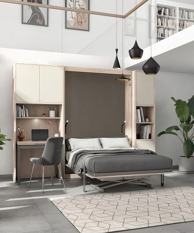 Le lit rabattable est un meuble résolument multifonctionnel! Une fois replié, le lit se transforme en placard ou en bureau et métamorphose la pièce en quelques secondes. De fait, un espace de travail peut devenir rapidement une chambre à coucher. De plus, il présente présente le gros avantage de faire gagner de la place dans une petite pièce, permettant ainsi une circulation fluide.